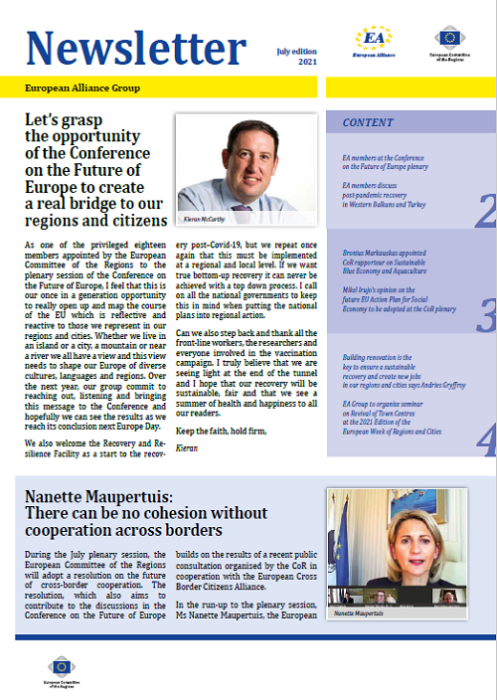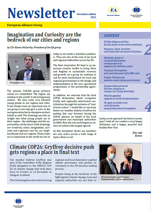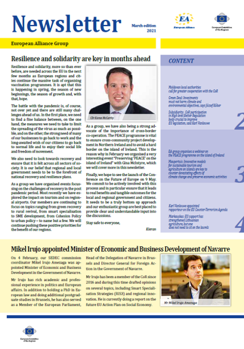 ​​​​​​​​​​The Newsletters of the EA group cover the main activities of our members. The Newsletters are published five times a year, before each plenary sessio​n of the Committee of the Regions.​